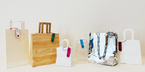 日常的に目にする紙袋。その軽やかな手触りや手軽さから、私たちはあまりその素材に意識を向けることはありません。しかし、この作品ではあえて紙袋の形状を異なるメディアで再現し、「なぜ紙でなければならなかったのか?」という根本的な問いを投げかけます。各素材が持つ硬さ、重量、質感の違いは、紙袋が持つ「軽さ」や「柔軟性」といった本来の機能をどう変えるのか。日常的なものを素材の視点から再考することで、普段見過ごしてしまう物の本質に迫る試みです。