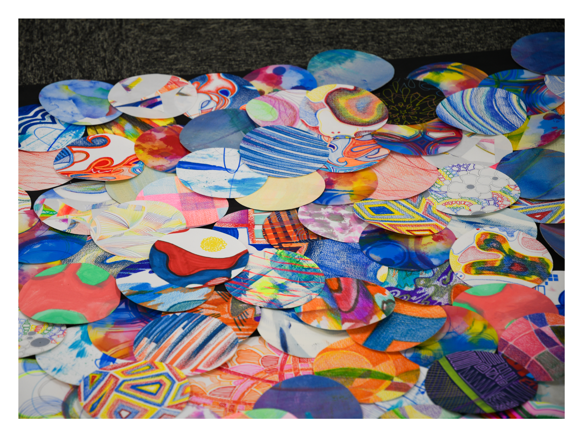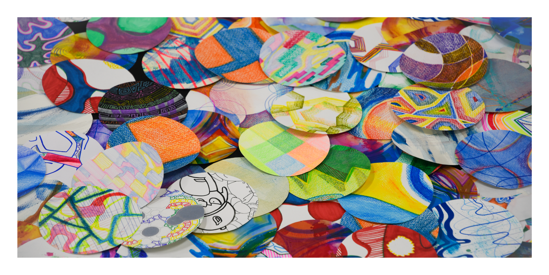 描きつづけ誰かに見せることなく自分の中で積み重なっていったドローイングたちは、細胞の集まりとなり、星となり、そして行き着くその果ては大きな銀河