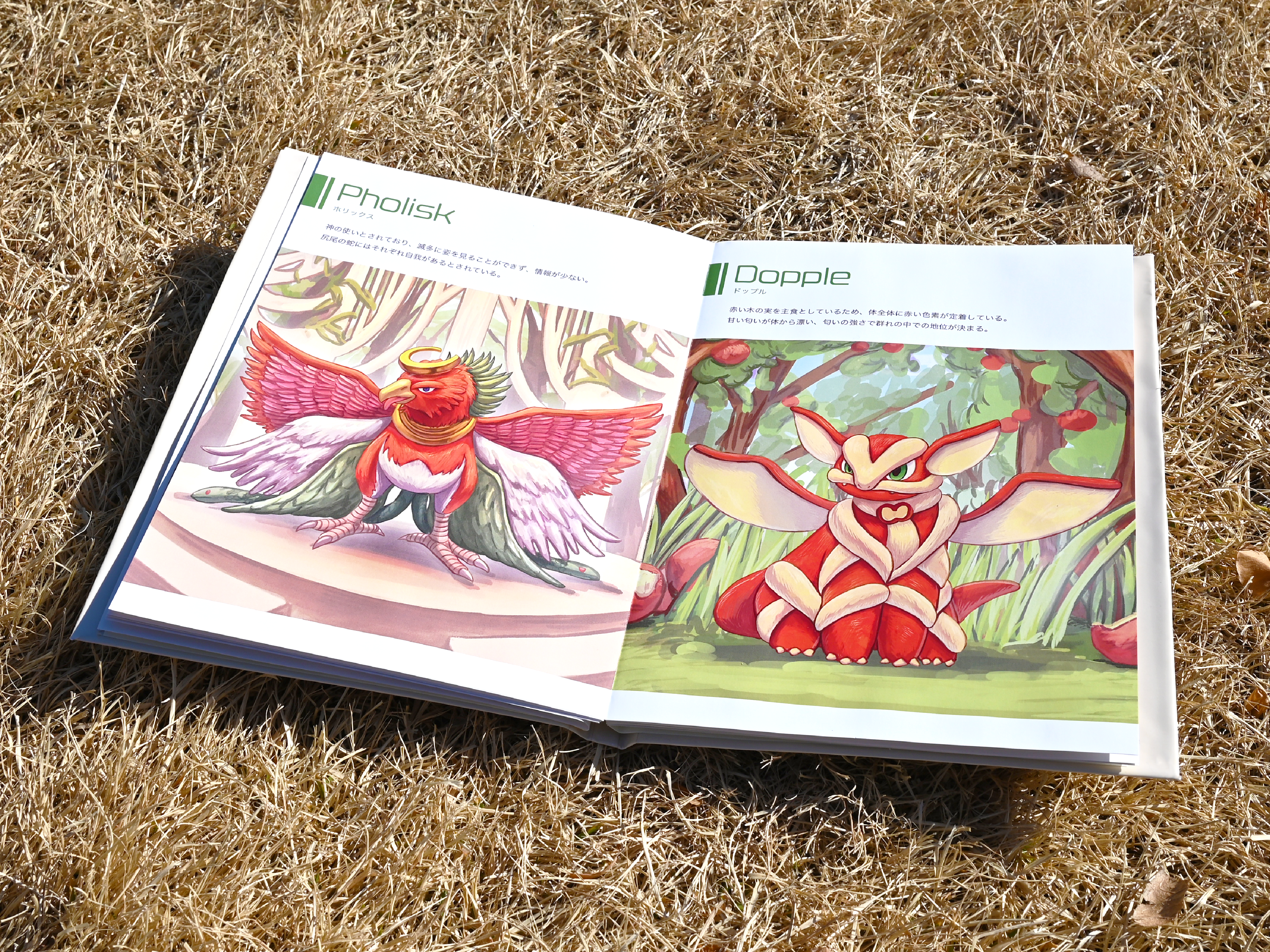 研究者とモンスターの物語を描きました。蛇腹本では出会いを描き、図鑑ではこれまでに考案してきたモンスターの生態などをまとめています。