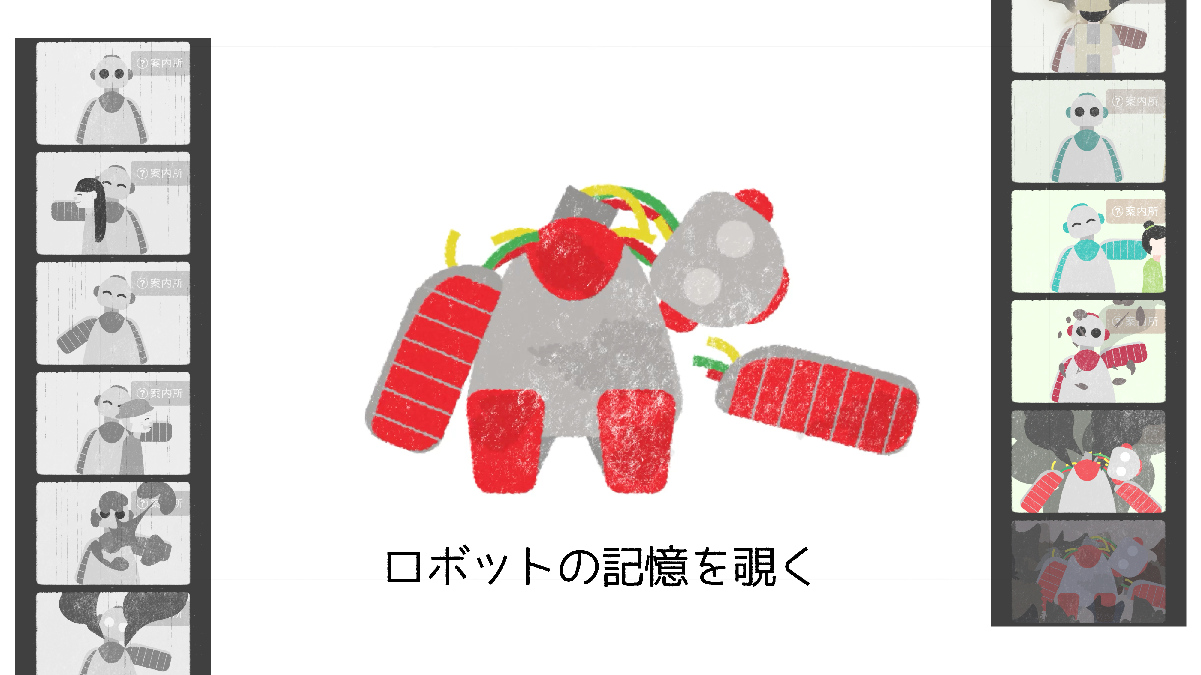 道端に落ちている一つの石。 それ自体には、特に何も感じないかもしれません。 しかし、「カラスが遠くの街から運んできた石」と聞いたらどうでしょうか? ただの石が少し特別なものに感じられませんか? この作品を通して、さまざまなモノの記憶を覗くことで生まれる感情の変化を体験してみてください。
